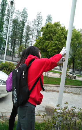 在党支部组织委员的带领下,每个人都及时到达了各自所管理与负责的区域,准备好劳动工具后便开始进行劳动。根据劳动培训课上劳动示范员张玉成所教授的方法以及观看铲除小广告的有关视频,大家都已掌握了劳动的正确方法,每个人都很得心应手,很快就融入到了义务劳动中。