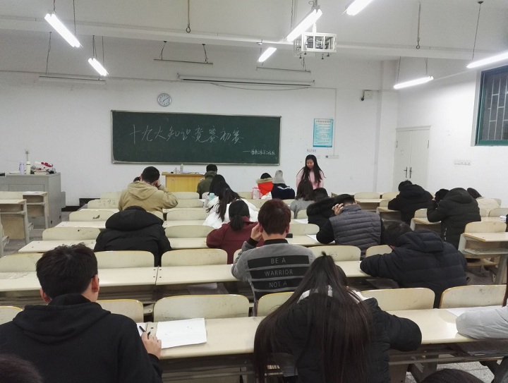12月12日晚18:30,粮食与食品工程系学生党支部组织的学习十九大知识竞赛初赛(笔试)在4-211教室如期举行。粮工系全体学生党员、入党积极分子和各班团员代表参赛。