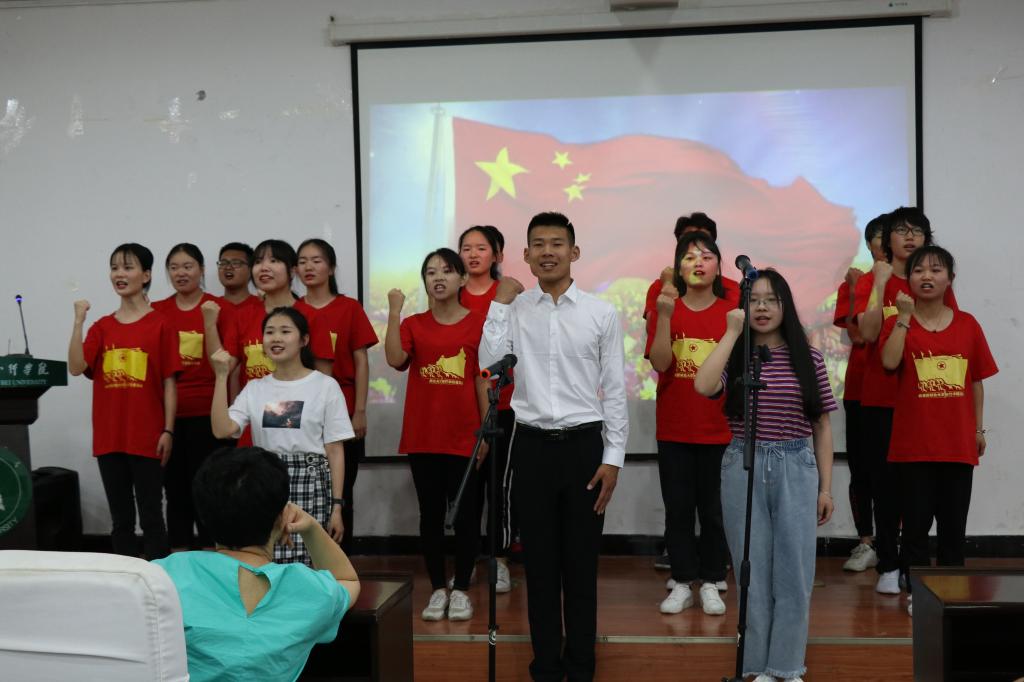 本次活动很荣幸请到精武社成员给大家带来开场秀节目,随后,由学生党员代表及入党积极分子代表带来的朗诵《共产党宣言》和《青春报告》,进一步深化了学生党员对马克思主义的了解与领悟,学习体会了马克思主义纲领性文件相关内容蕴含的时代意义,同时向观众展现出了当代大学生意气风发、挥舞青春的魅力。“颂歌献给党”红歌串烧更是表达了对中国共产党的讴歌与热爱,祖国不会忘记,民众不会忘记正义与光明,祖国终将选择那些忠诚于祖国的人,祖国终将选择那些奉献于祖国的人!不论在历史的长河中,在艰难岁月里,还是在和平的年代中,正是因为有了中国共产党的奋斗、开拓和引领,才有了今日富强民主文明和谐美丽的现代化强国。《大学问》合唱曲目让同学们用歌喉唱出自身对学问的渴求,同时也是一首献给毕业生的祝歌,走出校园报效国家,虽将离开,愿不惧未来!前程似锦!
