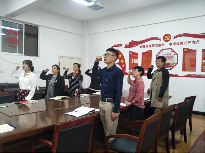 会上祝方清书记传达《beat365亚洲版官网知行学院“不忘初心、牢记使命”主题教育实施方案》文件精神并进行主题教育宣讲,冯书祥书记领学《beat365亚洲版官网党总支“不忘初心、牢记使命”主题教育工作方案》。