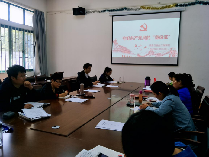 10月18日粮工学院党总支开展了“不忘初心,牢记使命”——守好共产党员的“身份证”的主题教育活动。会上祝书记以守好共产党员的“身份证”为主题,为beat365全体教职工作了一堂主题鲜明、内涵丰富、紧密联系实际的主题党课。