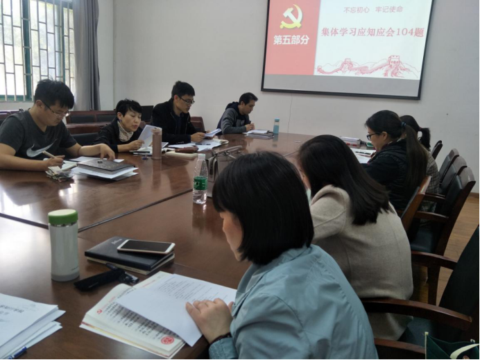 本次主题党日分为九个议程,全体党员规范开展会议签到、缴纳11月党费、学党章、学习应知应会并观看“榜样4”视频。祝方清书记开展“不忘初心 牢记使命”主题教育专题党课——党员在实际工作中如何“找差距 抓落实”,结合学习张富清、李连成、黄文秀先进典型事迹进行授课;把做到“两个维护”作为最高政治原则,不断增强“四个意识”、坚定“四个自信”,认真履行“一岗双责”,把党的领导、政治原则、廉洁自律要求贯穿于业务工作之中,要聚精会神推进主题教育,不折不扣落实各项决策部署,围绕学生和群众诉求,建立健全问题快速响应机制,明确责任,切实提高解决问题的质量和效率,把主题教育成果转化为推动改革发展的强大动力。要求全体党员、入党积极分子牢记共产党员的宗旨和使命,立足岗位落实好“不忘初心、牢记使命”的共产党员精神,践行宗旨深刻学好党章,努力成为新时代合格的共产党员。最后,根据“四个对照”、“四个找一找”要求,罗列问题清单及整改方案。