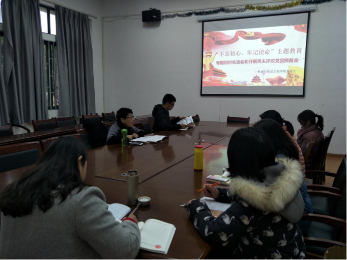 根据学院《关于做好2019年度民主评议党员工作的通知》和《中国共产党支部工作条例(试行)》有关规定文件要求,学院党总支高度重视,精心组织。为了深入宣传与动员、广大党员高度重视,12月17日下午粮工学院党总支书记祝方清组织开展了“不忘初心、牢记使命”主题教育专题组织生活会和民主评议党员预备会,学习相关的文件精神: “四个意识”,牢记“四个自信”,坚决做到“两个维护”,党员标准、党员的权利及义务,四讲四有等,对党员评议的相关内容专题学习,对照标准,找差距,在学习中总结,为开好专题组织生活会和民主评议党员打好基础。