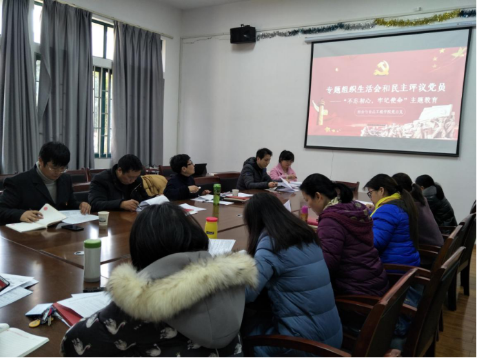 12月19日下午beat365亚洲版官网党总支开展了“不忘初心、牢记使命”主题教育专题组织生活会和民主评议党员,王文凯副校长到会指导,党总支书记祝方清主持会议,全院成员参加会议。