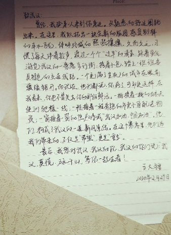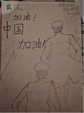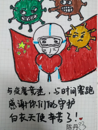 同学们真诚地写下、画下对武汉、对一线人员的祝福。精致的信纸上跳跃着:“武汉加油,中国加油”的字样。画纸上有戴着口罩的医生和身着军装的军人,寄托了作者对前线工作者坚守岗位的赞美;也有描绘着身穿防护服的医护人员和国旗下与病毒争斗,生动地刻画了祖国永远与人民同在;表达祝福的方式有千种万种,期盼平安喜乐的心却是一致的。