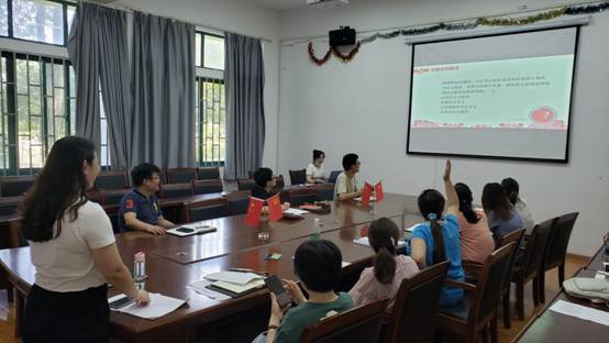 中午,大家先开展了党史知识竞答活动。在詹婧娴同志的主持下,大家踊跃抢答,既增加了学习的趣味性,又充分调动了学习的积极性。最终,冯书祥副书记以专业的知识储备摘取头名,获得优秀共产党员称号的陈洁同志获得高分紧随其后。
