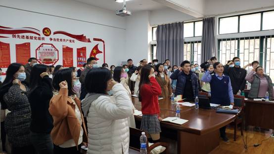 宣讲前,“我志愿加入中国共产党,拥护党的纲领……随时准备为党和人民牺牲一切,永不叛党。”全体党员面向党旗庄严肃立,庄严地举起右手,铿锵有力地重温入党誓词,重忆入党初心,重新接受党性洗礼。