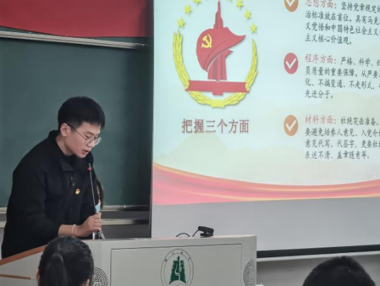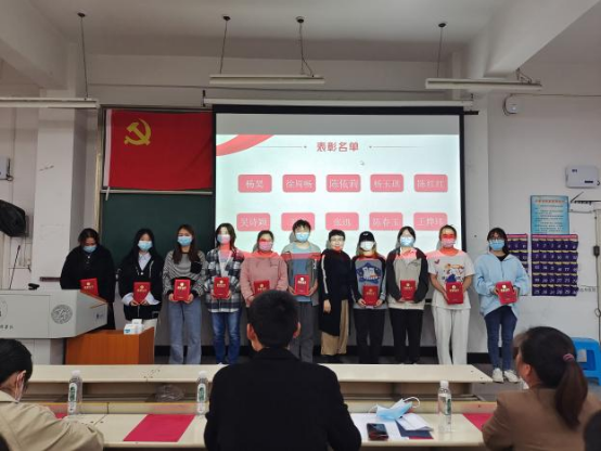 活动开始,大家先集体观看中国共产党国际形象网宣片《CPC》,共同回顾中国共产党自成立以来走过的路,认真体会党始终如一为人民服务的宗旨。活动中,对今年以来在学校疫情防控志愿服务、社区实践、公寓安全值班等工作中表现突出的同学进行了表彰,学院党总支书记祝方清、副书记冯书祥分别为获奖学生颁奖,为同学们树立了学习的榜样。第二党支部宣传委员吴杰雄向同学们介绍了为什么要加入中国共产党以及入党的要求、程序,并对第二党支部今年以来的工作进行了总结,分享历年来优秀学生党员的先进事迹。