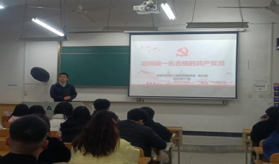 开班仪式圆满结束后,第一堂党课以“如何做一名合格的共产党员”为主题由生物与化学工程学院第二党支部党建指导老师肖天雄主讲。