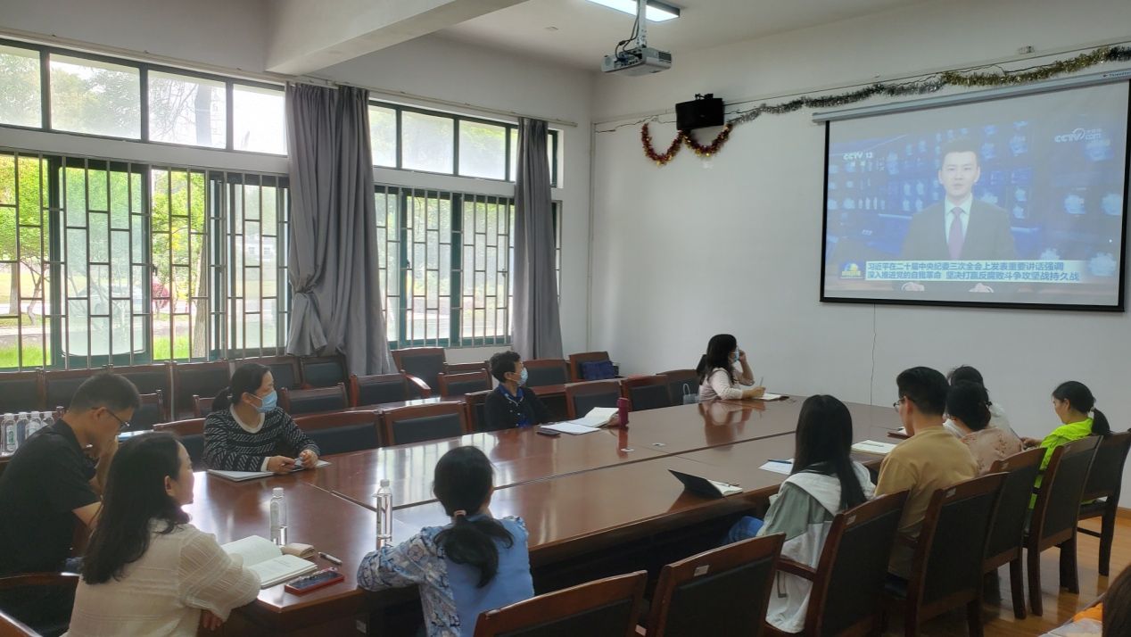 然后,大家集体学习了中共中央办公厅印发的《关于在全党开展党纪学习教育的通知》精神,观看了cctv视频“习近平在二十届中央纪委三次全会上发表重要讲话强调 深入推进党的自我革命 坚决打赢反腐败斗争攻坚战持久战”。