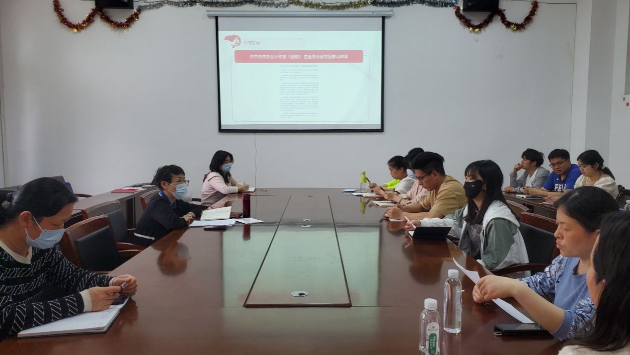 为深入学习贯彻习近平总书记关于党纪学习教育的重要讲话和重要指示精神,巩固拓展学习贯彻习近平新时代中国特色社会主义思想主题教育成果,部署学院党纪学习教育和基层党建工作。4月24日,beat365亚洲版官网第一党支部全体教工党员在知化楼101会议室召开了党纪学习教育动员部署会。书记祝方清主持会议。