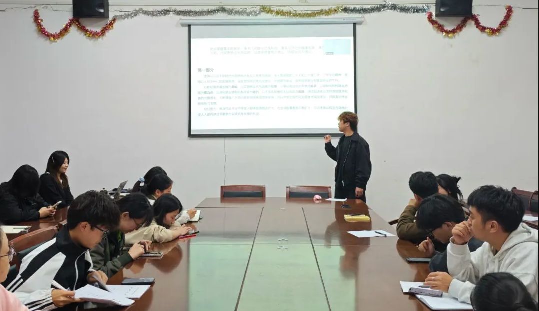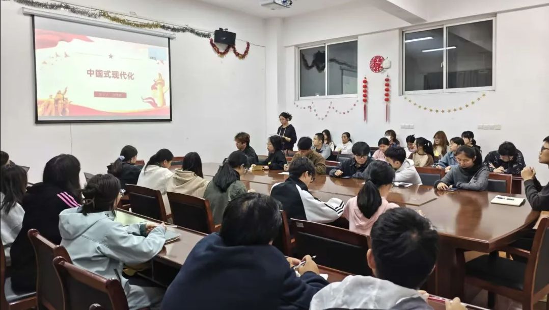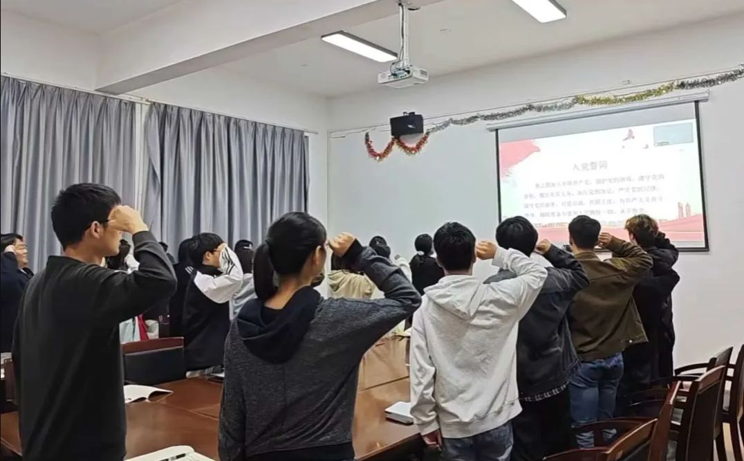活动开始,全体党员重温入党誓词,并集体诵读《中国共产党章程》第七章“党的纪律”。理论学习中,田祎然结合党的二十届三中全会精神和自己的学习体会,领学并分享“中国式现代化的路径与成就”。 卢笛同志带领大家学习了习近平总书记在庆祝中华人民共和国成立75周年招待会上的重要讲话,并结合习近平总书记关于大力弘扬伟大爱国主义精神的重要论述,引导同学们深刻认识“爱国主义精神”的重大意义,坚定“四个自信”,勇于实践锻炼,成长为建设中国式现代化的栋梁之才。饶子健、杨雯慧同志领学分享了《中共中央国务院关于实施就业优先战略促进高质量充分就业的意见》,习近平总书记在中共中央政治局第十四次集体学习时强调,坚持把高校毕业生等青年群体就业作为重中之重,开发更多有利于发挥所学所长的就业岗位,鼓励青年投身重点领域、重点行业、城乡基层和中小微企业就业创业,希望同学们提高专业技能,增强就业能力,把握机遇,响应国家号召,积极投身国家建设。