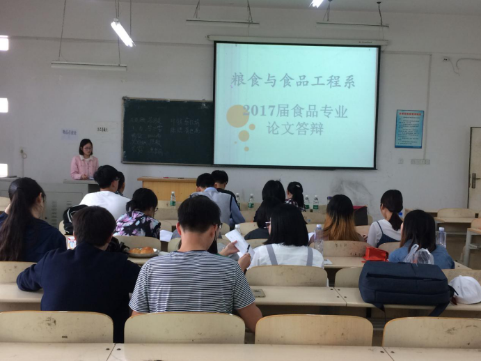 2017年4月18日,我系食品质量与安全专业论文答辩在4-109举行,参加答辩的同学均提前到达会场,做好准备工作,等待大学期间最后一场实战性“考试”。答辩组由刘齐、刘爱红、汪浩明组成。