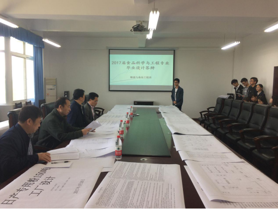 4月27日上午,粮食与食品工程系食品科学与工程专业2013级本科毕业设计答辩会在知远楼601会议室举行。参加此次答辩会的有杨登想、熊万斌、叶敏、陈渊明等四位老师和食科1301本班的全体同学。