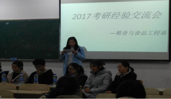 粮食与食品工程系部于二月二十八号在知新楼305开展了考研经验交流会,参会人员有安检1401B,食科1401B,安检1501B,食科1501B,13级学长学姐代表以及辅导员,目的旨在于让同学们对考研了解更多,认识更多,能更好的为自己制定明确的目标!