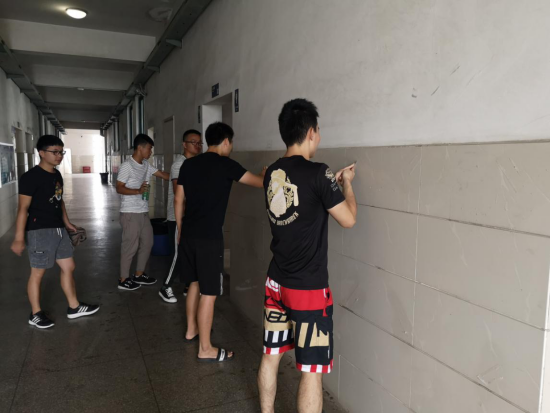 在辅导员简单指导后,大伙儿撸起袖子干了起来。期间两边厕所的“牛皮癣”是重灾区,虽然除胶剂气味大,厕所里的小广告陈旧难刮,但是在同学们不怕苦不怕累的认真态度下也全部清除干净。