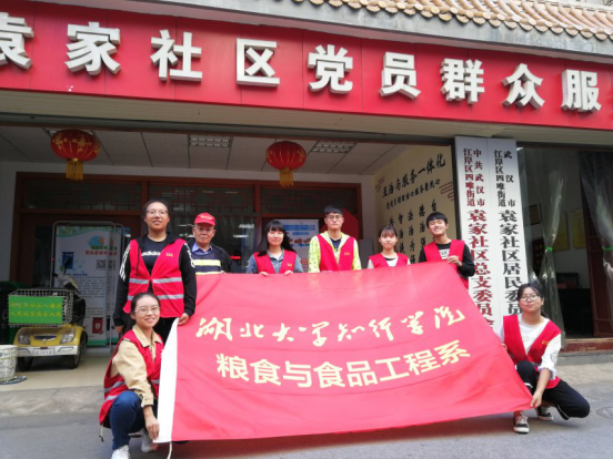 2018年10月30日上午,湖大知行学院粮工系食科1803B班在袁家社区开展社区志愿服务,对社区楼道小广告的进行清除并对清扫楼道平台。