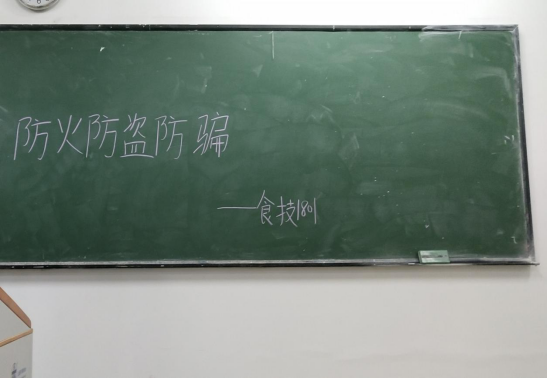 2018年11月19日食技1801班同学在知真楼203举办了防火防盗防骗主题班会。