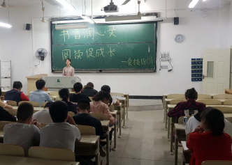 会前该班团支书余思雨介绍本次活动主题,活跃班会的气氛;其次,同学们陆续自愿分享自己喜欢的书籍,及书中最精彩的片段、情节,表达自己阅读后的感想、启示;再次,团支书向同学们推荐经典名著,曹禺先生的“生命三部曲”《雷雨》《日出》《原野》;最后辅导员郭雅纯鼓励同学们多读书、读好书,让读书成为每个人的行动自觉,做到把书读薄,把人读厚,把书读旧,把人读新,把读书的所思所悟用以指导学习和生活,做到知行合一。