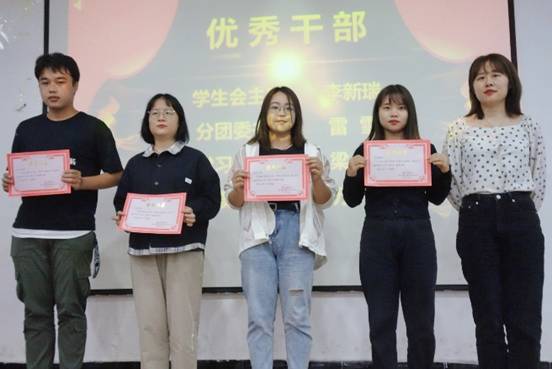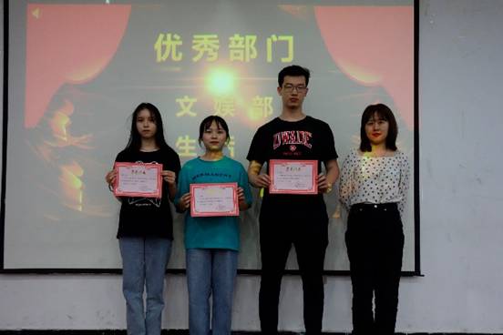 随着音乐响起,主持人揭晓了优秀干部与优秀部门的名单。由辅导员张忠萌老师为他们颁奖。线上卫生清洁大赛和线上厨艺大赛的奖状由辅导员郭雅纯老师颁发。