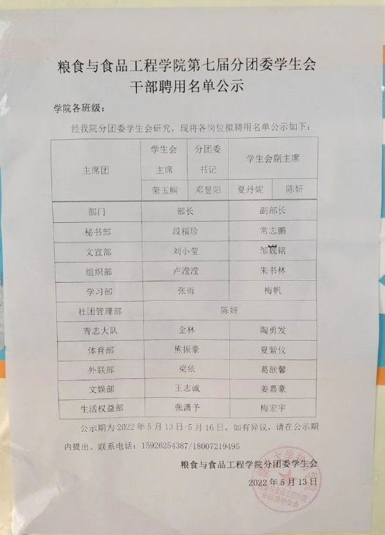 beat365亚洲版官网第七届分团委学生会干部聘用名单公示