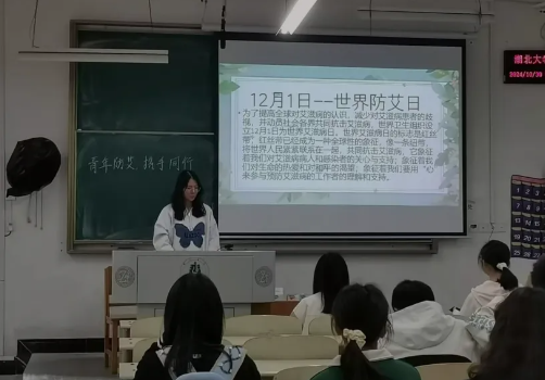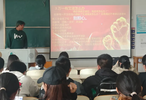 食科2201B通过PPT介绍了艾滋病的相关知识,引导同学们全面了解艾滋病以及教他们如何正确对待艾滋病患者和如何预防艾滋病,在班级内部营造了良好的知艾防艾氛围,提高了学生共同承担防艾的社会责任感和使命感。