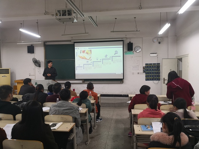 2018年11月26日,我系邀请湖北新美香食品有限公司为返校参加毕业论文答辩的2019届毕业生举办专场招聘会。新美香食品有限公司是一家大型台商独资集团企业,主要生产和销售“新美香”即食汤、冻干水果、脱水海鲜、肉类、蔬菜及营养快餐系列等产品。集团在湖北荆州、山东青岛等地均有分公司,并正在武汉市武湖、走马岭建设新厂房,用人缺口较大。在招聘宣讲中,公司HR介绍了企业发展情况和岗位职责与需求,我系2018届入职新美香的许永亮同学分享了在公司参与项目情况、工作情况和成长经历,并诚挚邀请学弟学妹的加入。