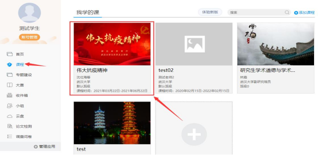 第二步:登录以后,左边导航栏进入“课程”应用,点击课程图标即可进入课程学习界面。