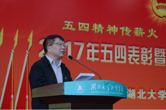 党委书记吴志文向受表彰的集体和个人表示热烈的祝贺,向全院广大青年朋友们致以诚挚的节日问候。吴志文书记对学院共青团过去一年的工作和取得的成绩给予了充分肯定,并向全院广大青年学生提出三点希望和要求:一是要勇担历史重任,让“五四”精神之光照亮人生梦想。“得其大者可以兼其小”,他希望全院青年学生要在这个时代主题下谋划人生,创造历史,敢于有梦、勇于追梦、善于圆梦,肩负起时代赋予我们的责任和使命,自觉地把个人的理想融入追求国家和民族的事业中,勇做走在时代前列的践行者、奋进者、开拓者和奉献者,让青春在为祖国、为人民、为民族的奉献中焕发出绚丽的光彩。二是要善于学习实践,让“五四”精神成为青春远航的不竭动力。他强调指出,广大青年学生要把学习作为首要任务,作为一种责任、一种精神追求、一种生活方式。要以只争朝夕的紧迫感,珍惜青春时光、脚踏实地,把远大理想落实到实际行动中,让勤奋学习成为青春远航的动力,让增长本领成为青春搏击的能量,在实践的熔炉中增长见识、砥砺品质、强化本领,不断充实自己、提高自己、丰富自己。三是要敢于开拓创新,让“五四”精神在实践中绽放光芒。他希望全院青年学生要大力发扬以改革创新为核心的时代精神,有那么一种勇立潮头的浩气,有那么一种超越前人的勇气,有那么一种与时俱进的朝气,立足岗位、讲求科学、讲求方法,把创新潜能充分发挥出来。要有敢为人先的锐气,勇于解放思想,与时俱进,敢于上下求索、开拓进取,树立在继承前人的基础上超越前人的雄心壮志。要有逢山开路、遇河架桥的意志,为了创新创造而百折不挠,勇往直前。要有探索真知、求真务实的态度,在立足本职的创新创造中不断积累经验,取得成果。吴志文书记最后希望广大青年学生在实现中国梦的伟大实践中弘扬“五四”精神,牢记历史使命,在担当与奋进中谱写知行青年更加壮丽的青春乐章,以优异的成绩迎接党的十九大胜利召开!