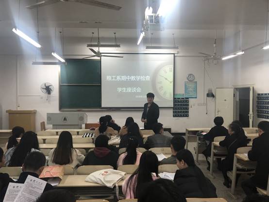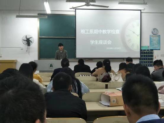 11月14日下午,粮食与食品工程系在4号教学楼110教室举办了期中教学检查学生座谈会。出席本次会议的有粮工系书记祝方清、系主任刘齐、外语系相关任课老师,以及我系其他教师和副书记、辅导员等。与会的学生有各班学习委员、班长、学生代表等。座谈会由系主任刘齐主持。