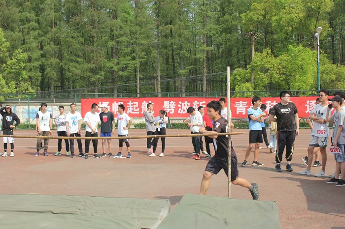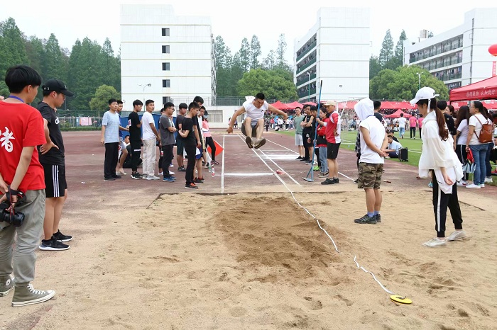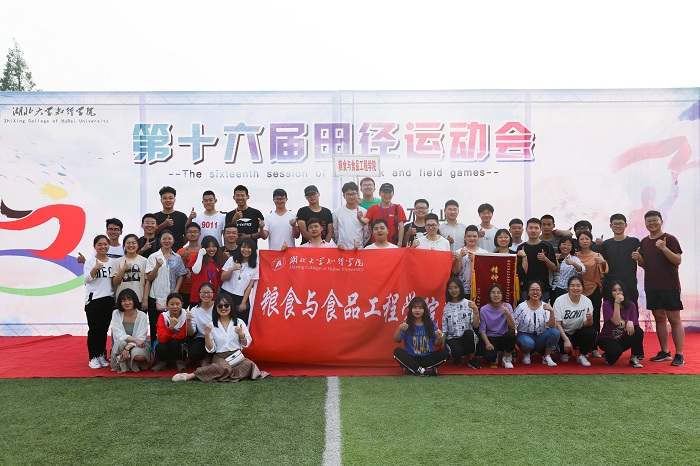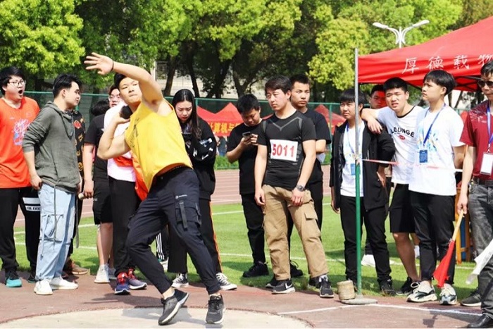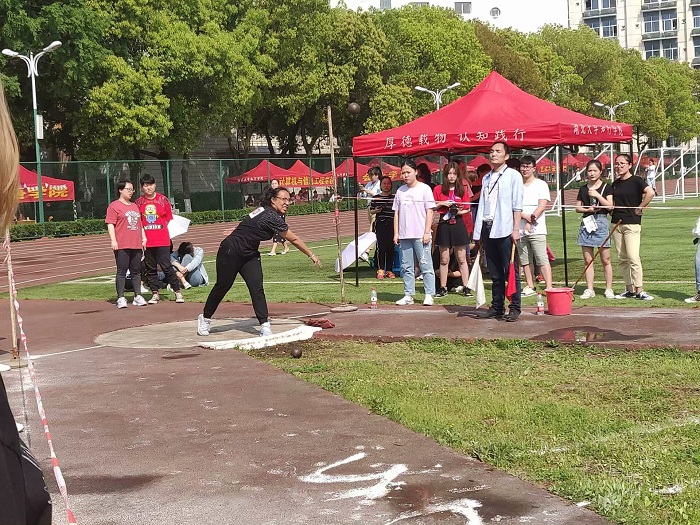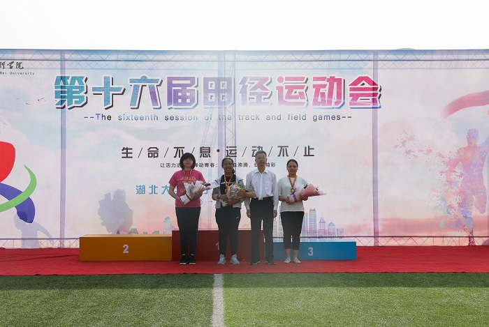 学校党委书记彭德忠为女子铅球获奖者颁奖