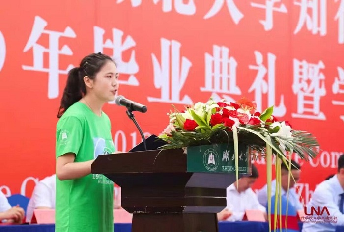 beat365王倩同学作为代表在学校2019届毕业生毕业典礼暨学位授予仪式上发言