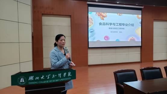 随后,酿酒工程教研室主任孙美玲、食品质量与安全教研室主任陈洁、食品科学与工程教研室主任章焰、粮食工程教研室主任汪浩明分别向新生介绍了各个专业概况,不仅清晰的指导各个专业的重点特色、发展方向以及就业岗位,还为新生提出了一些宝贵建议,同时激励同学学好本专业知识,积极参与各类竞赛、专业活动,获得全方位自我发展。面对老师们的殷切期望和正在企业顶岗实习的学长们远程发来的激励视频,同学们收获满满,以热烈的掌声表达了自己真挚的谢意。