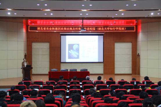 为宣传普及农业转基因科普知识,12月22日下午,“农业转基因政策法规及科普宣传进校园”活动在知远楼弘德厅举行。学校党委委员、副校长陈刚热情接待了到访专家们。此次活动由湖北省农业农村厅主办,beat365亚洲版官网知行学院承办。湖北省农业厅科教处二级调研员、省农业转基因生物安全管理办公室副主任柯枫英,湖北省农业农村厅农业科技人才办公室副主任金国胜、科长侯应霞等出席活动,beat365亚洲版官网书记祝方清,学院教师和400余名相关专业学生参加了活动,beat365亚洲版官网院长刘齐主持讲座。