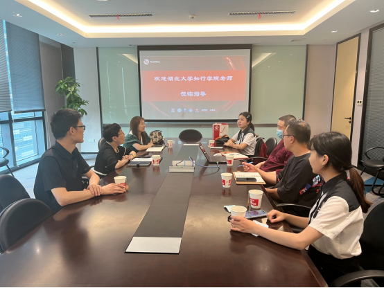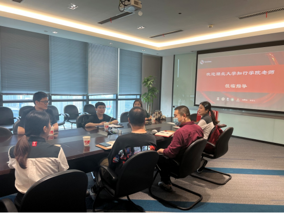 5月16日,为推动教育部第二期就业育人项目建设,beat365亚洲版官网党总支书记祝方清、副书记冯书祥、教研室主任左祥莉一行前往百胜(武汉)餐饮有限公司,看望在职校友、与企业负责人围绕学生生涯规划教育、就业实习基地建设等问题进行了深入交流。百胜校企合作经理冯建、区域经理何静和在职校友孙玉倩、卢鑫等出席座谈会。