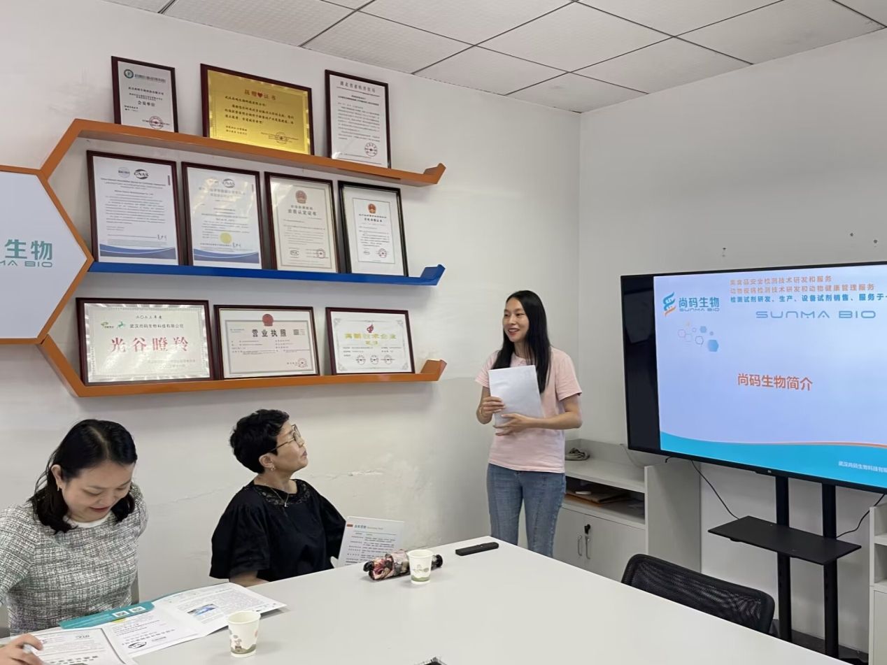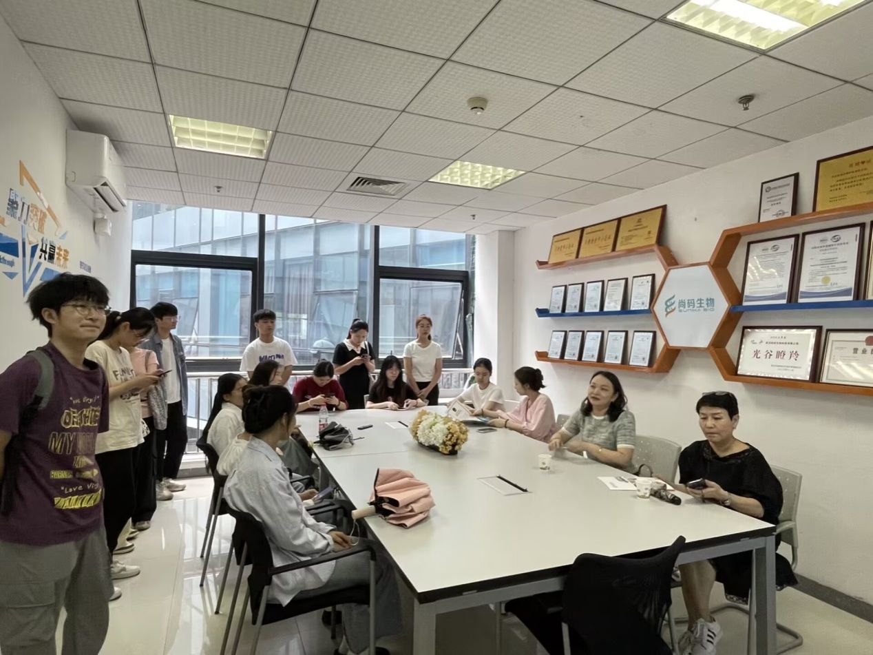 为深入贯彻落实学校2024届毕业生就业工作“百日冲刺”行动实施方案,增强校企合作,为学生实习和就业搭建平台、拓宽渠道,6月19日,学院党总支书记祝方清、食品质量与安全教研室主任陈洁一行前往武汉尚码生物科技有限公司进行访企拓岗,带领近20名2024届、2025届有意向到该企业实习、就业的同学实地参观考察并现场面试。武汉尚码生物科技有限公司食品事业部的总经理刘晶、实验室主管王亚茹等热情接待了beat365到访师生。