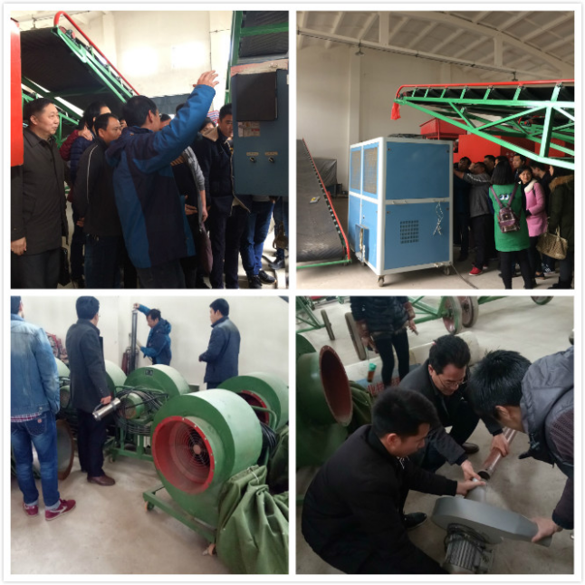 讲解完粮食过磅环节的技术操作要点后,同学们来到了储运粮食的机械库,技术人员停在了一台仓储冷却机前,粮食储藏关键就是低温储藏,而夏天的武汉又是有名的火炉城市,因此,粮食夏季的低温储藏显得尤为重要。技术人员告诉同学们,夏天储藏粮食降温主要靠冷却机,仓房内的空调主要起辅助降温作用。技术人员分别对相关降温设备的使用进行了详细的讲解。同学们也兴致勃勃的围绕冷却机相关参数,维护保养及使用注意等方面进行了广泛交流,深入探讨,技术人员也对同学能的提问一一的耐心回答。