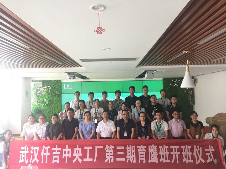 7月10日上午,武汉仟吉中央工厂第三期育鹰班举行开班仪式,武汉仟吉食品有限公司中央工厂总经理宋劲松、各部门经理出席仪式,我系党总支副书记冯书祥、实习指导老师章焰参加仪式。
