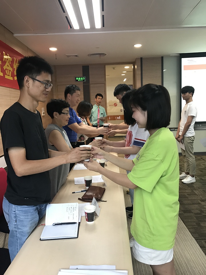 签约仪式后,经理班全体学员集体朗诵弟子规,并举行了庄重严肃的拜师献茶仪式。百胜餐饮(武汉)有限公司庄庆军经理从企业发展与文化、广阔的发展空间及福利、 更高的职业平台 、工作及生活培训 、经验及工作证明等方面详细介绍了百胜经理班培养计划,让同学们对今后半年的学习和工作有了清晰的认识。