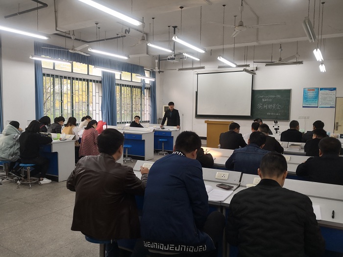 学院2018年11月26日上午,粮食与食品工程系在知化楼110教室召开2016级粮食行业单招班实训动员会,系主任刘齐主持会议,单招班全体学生和相关实训指导教师参会。