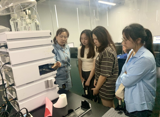 王大为向大家介绍了检验检测行业现状,企业资质、企业文化和发展情况,员工工作内容、福利待遇和成长路径。随后,公司实验室负责人带领师生参观了整个公司,对光谱室、液相室、气相室、前处理室、理化室、微生物实验室等做了详细介绍并演示,让同学们对整个业务环节、工作环境和工作内容有了清楚的认知。同学们结合所学专业知识虚心向工作人员请教,就仪器设备、实验检测和实验操作流程方面进行交流。辅导员郭雅纯老师借此机会看望了在此工作的2022届毕业生,关心他们的工作生活和发展情况。