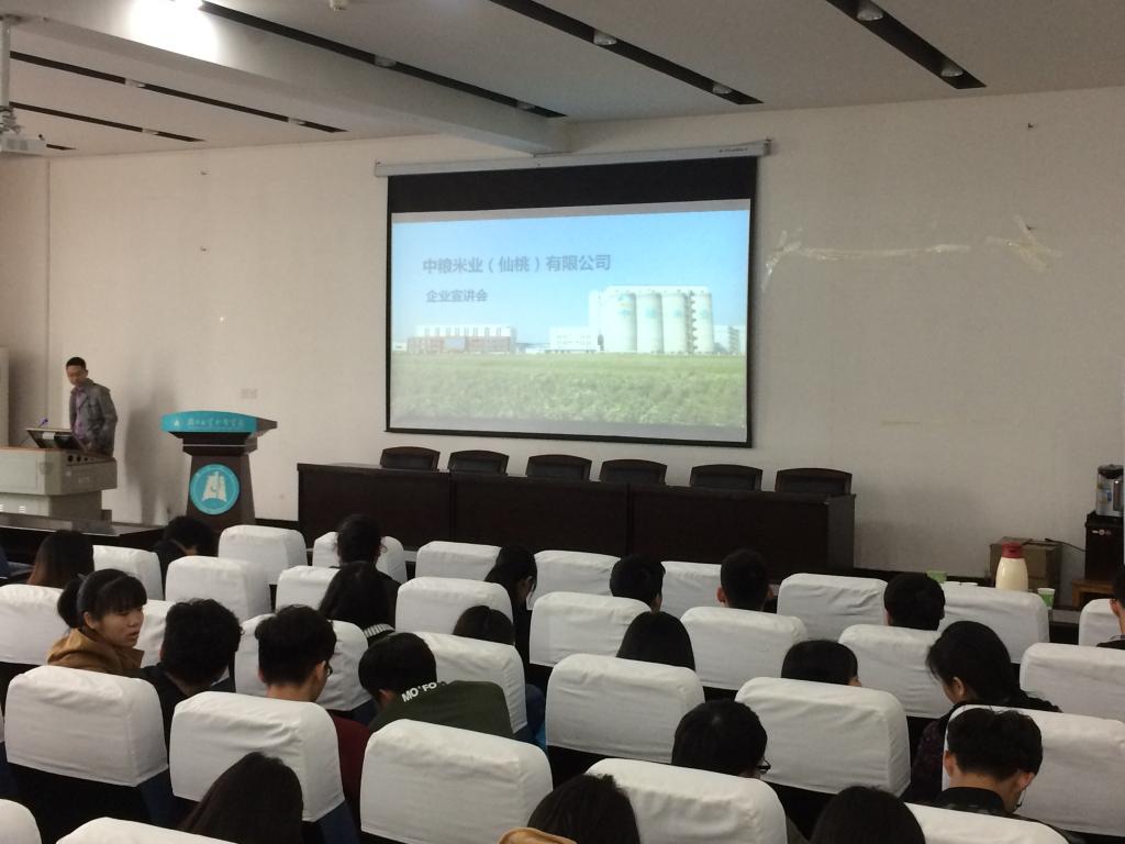 2017年4月6日上午,由粮食与食品工程系联系的企业----中粮米业(仙桃)有限公司在学术报告厅106举办了企业宣讲会。我系2015级食品加工技术、食品营养与检测专科和2014级食品科学与工程、食品质量与安全本科及部分2017届应届毕业生参加了此次企业宣讲会。