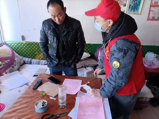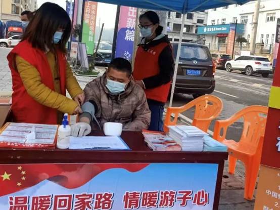 王信怡同学积极参与街道文明建设志愿服务,为群众免费测量血压并发放春联,分发民法及城乡居民医疗保险手册,宣传相关知识,引导群众提高文明素养。